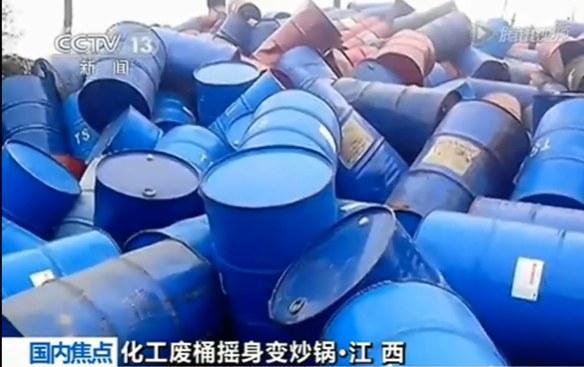 2011年,央視新聞報道了一則由廢棄鐵桶加工炒鍋的新聞,加工廠使用的鐵桶本身是用於盛放二氯甲烷、異丙醇等危險化學物質的,加工而來的鐵鍋內也有多種重金屬元素超標問題,長期使用會嚴重威脅健康。