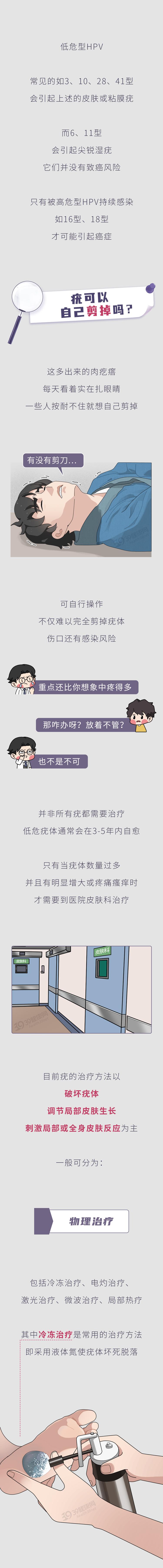 PV病毒的類型有200多種,而導致皮膚疣的HPV病毒通常是低危型,如果人體免疫力正常,這些疣體也可能慢慢自行消退。