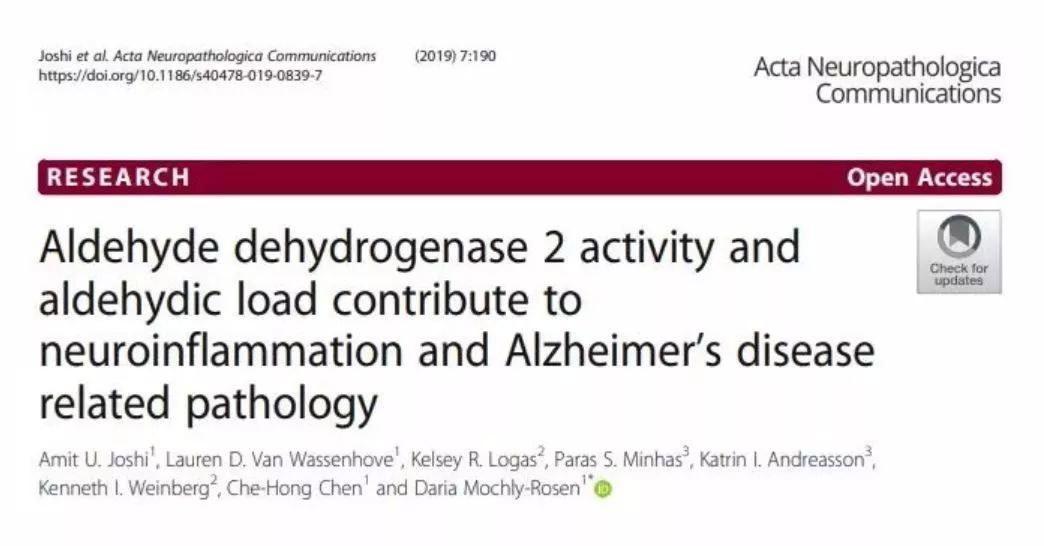 2019年12月,斯坦福大學醫學院研究人員發表在《神 經 病理學學報通訊》雜誌上的研究指出,有喝酒臉紅的基因的人更容易得老年癡呆症。