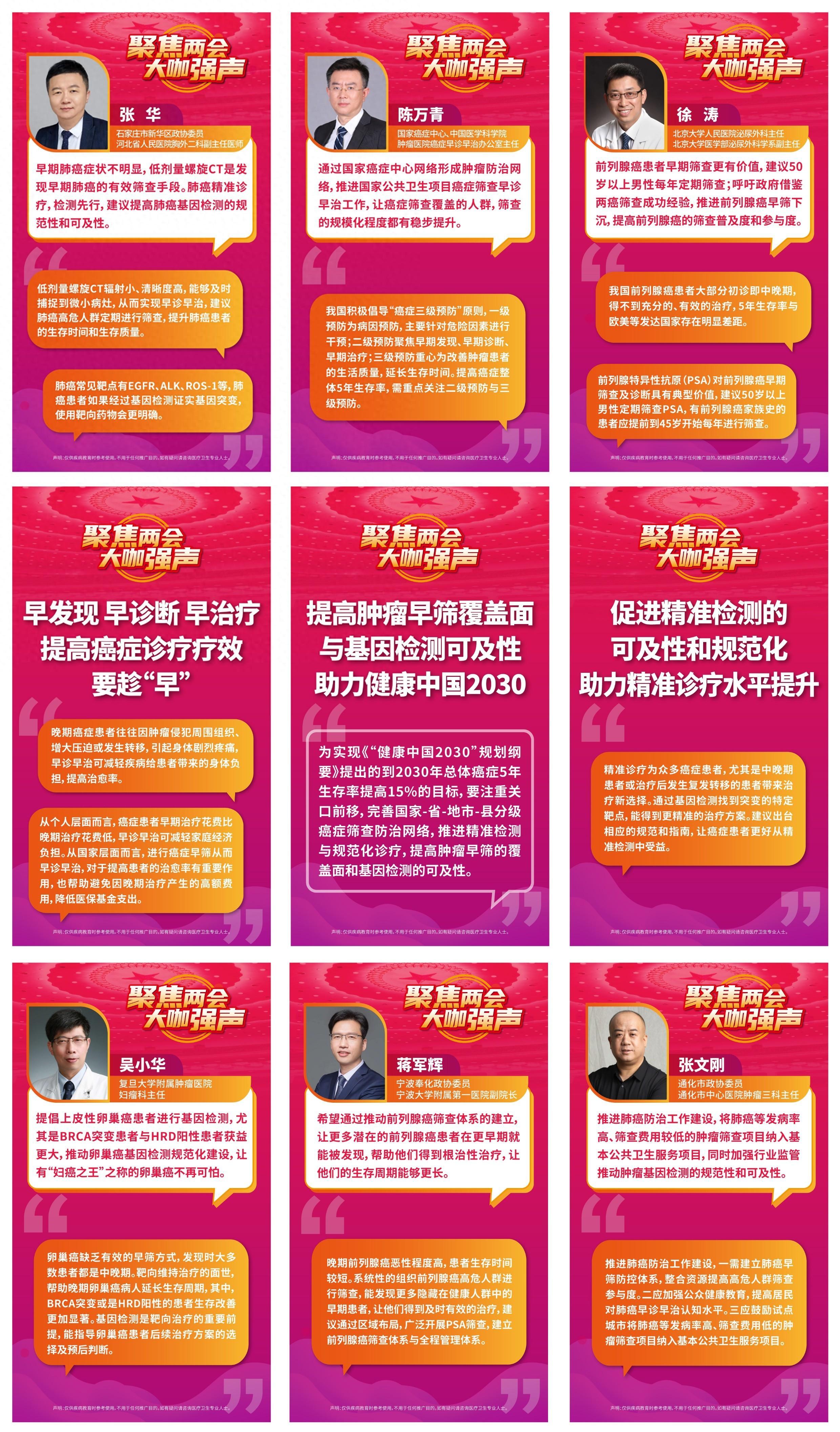 目前,精準診療已成爲衆多癌症患者的治療新方案,而精準檢測是幫助患者“對症下藥”的關鍵。爲助力腫瘤防治事業高質量發展,以及“健康中國”目標的實現,腫瘤領域權威大咖們在2024“兩會期間”建言獻策,共話腫瘤早篩和精準檢測的機制建設,一組金句海報請查收!