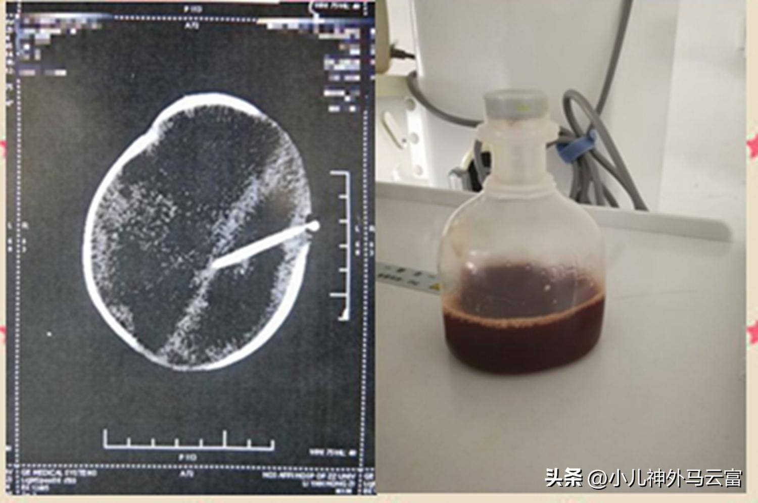 患兒頭部CT圖術後及腦脊液圖