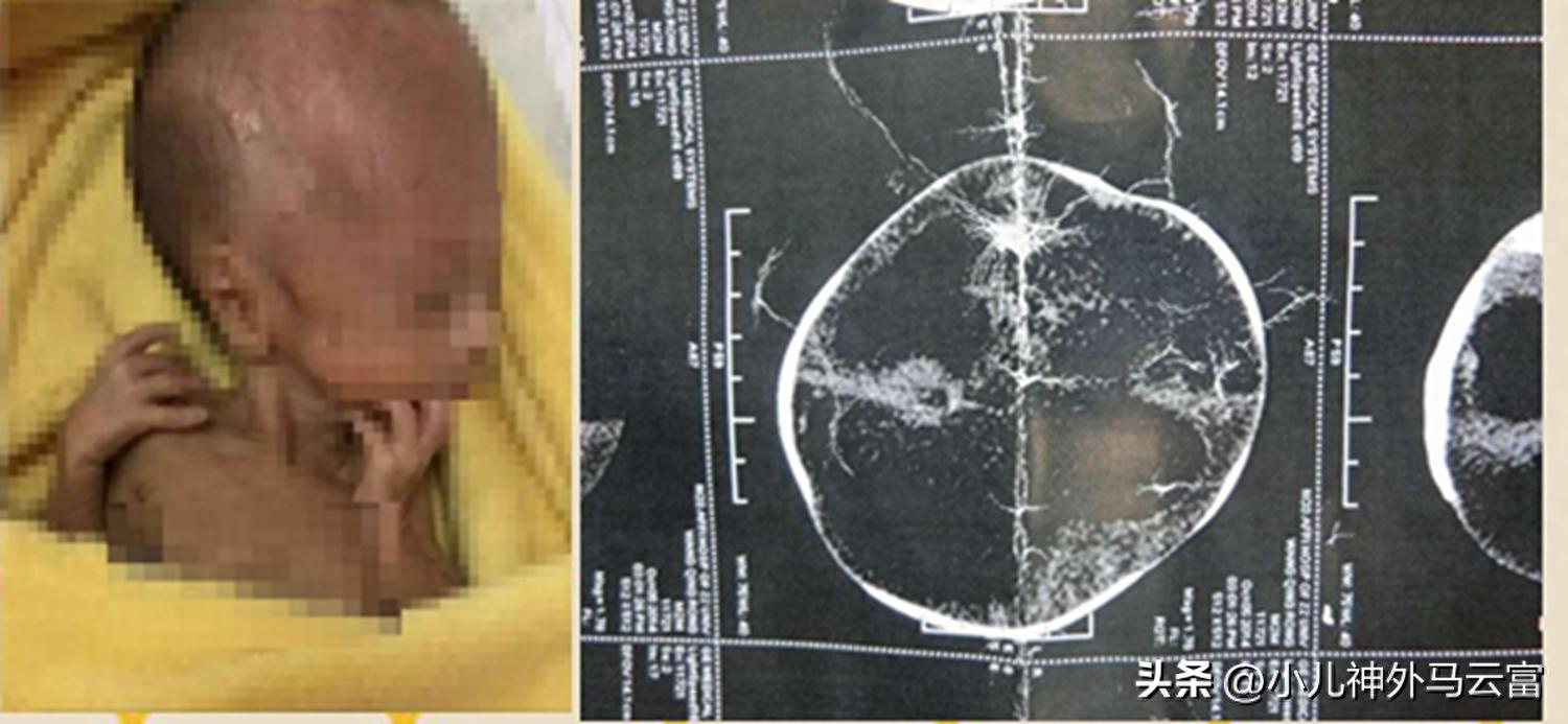 患者小小張,因爲她的父母都姓張,所以我們這麼稱呼她。因她媽媽“胎膜早破、羊水過少”當時是剖腹產出生的,生後不久即出現呻吟樣呼吸,以“早產兒、低出生體重兒、新生兒呼吸窘迫綜合徵”爲診斷急轉入我院NICU。在NICU治療期間寶寶頭圍逐步增大,頭皮靜脈怒張,兒科大夫懷疑伴有腦積水、腦室出血,隨即給患兒小小張做了頭部CT,提示:重度腦積水、腦軟化、腦室內出血、腦實質少量出血,nicu診斷爲:肺部感染,小兒腦積水,腦出血伴腦軟化。