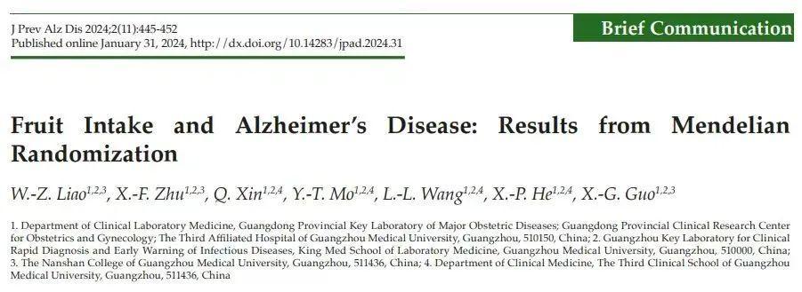 研究人員對英國生物銀行和芬蘭數據庫的部分數據進行了分析,樣本量爲34.2萬餘例,探討了新鮮水果攝入量和水果乾攝入量對阿爾茨海默病易感性的因果影響。