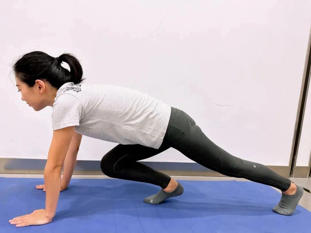 從平板支撐式的姿勢開始,將右側膝蓋靠向胸部,然後返回起始位置;將左側膝蓋靠向胸部;兩側交替做30秒鐘;提升鍛鍊強度,可加快動作速度。