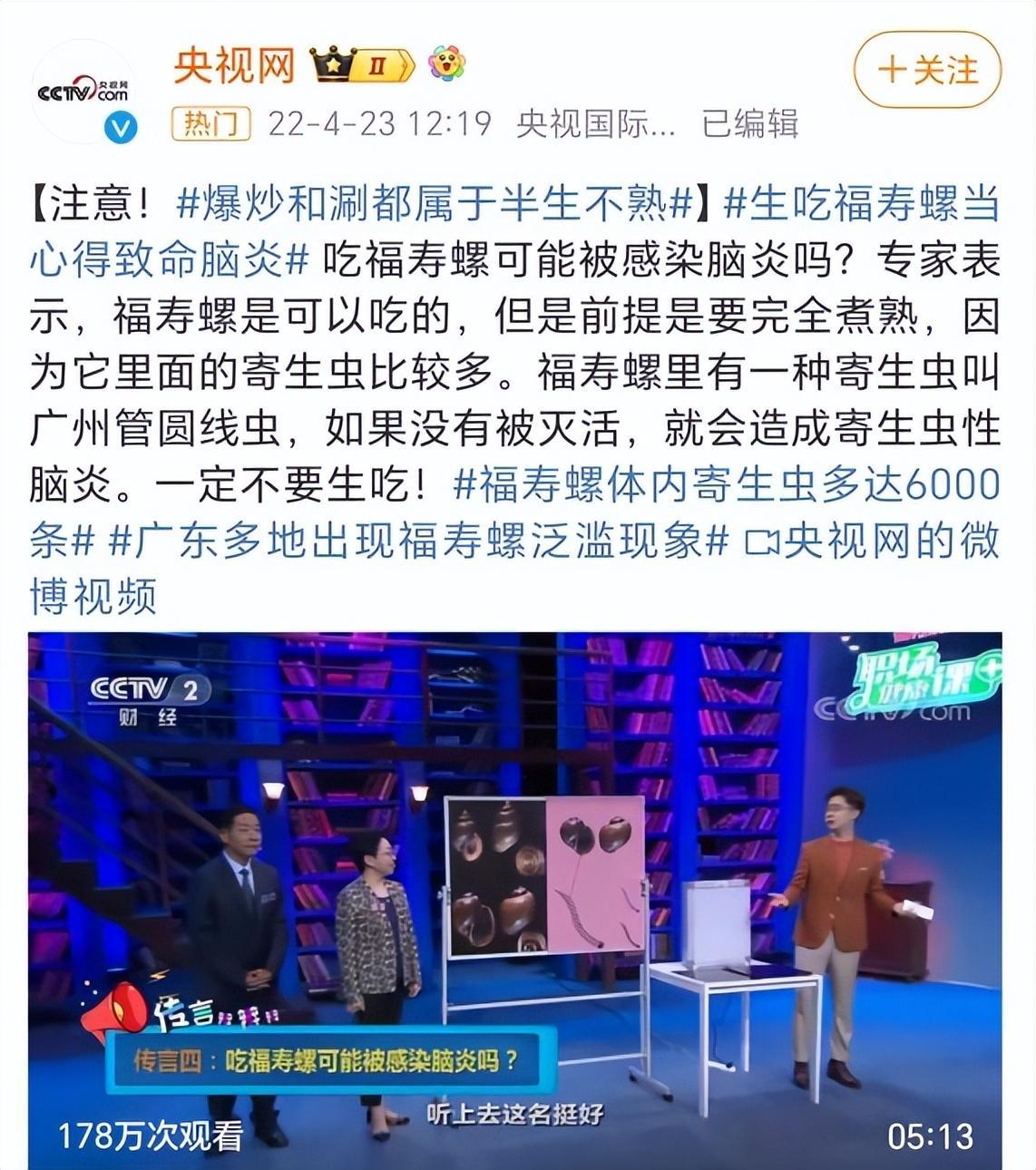 螺類難煮熟,爆炒和涮都難滅蟲,生喫更是危險,易感染腦炎。因爲廣州管圓線蟲主攻中樞神經系統,感染後會引起頭疼劇烈、脖子僵硬,少數嚴重者還會有腦膜炎、癱瘓風險。