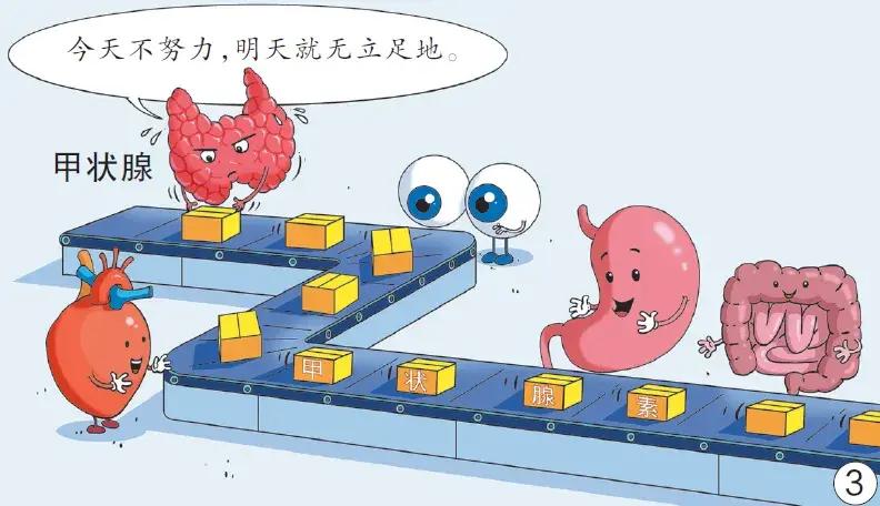 受刺激的甲狀腺就會陷入“內卷”狀態,不斷分泌甲狀腺激素,給其他同事加油鼓勁,導致同事們興奮性增高、代謝亢進,引發甲亢。