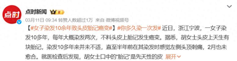 浙江一位李女士頭皮上的胎記發生癌變,原因竟然和長期染髮刺激有關。