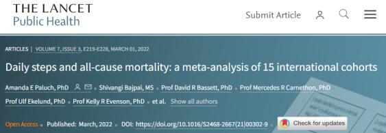 [1]《每天多少步有益長壽?《柳葉刀》新研究:年齡不同,最佳步數也不同!這些人獲益更大~》.我是大醫生官微.2022-05-03