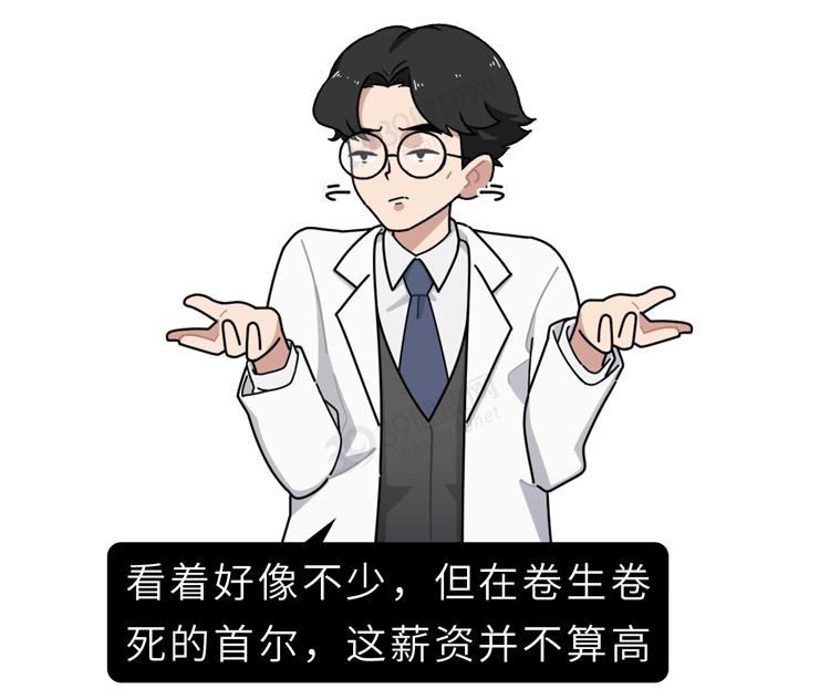 醫生在韓國是非常高薪且受尊重的職業,他們的平均年薪高達 20 萬美元(約 140 萬人民幣)。