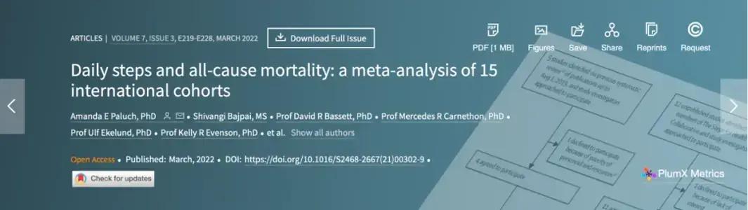 《柳葉刀-公共衛生》上一項涉及四大洲4.7萬餘人的研究指出,18~60歲的人羣每日進行8000~10000萬步可降低的死亡風險最大;年齡60歲以上的人羣,每日進行6000~8000步步行降低的死亡風險最大。