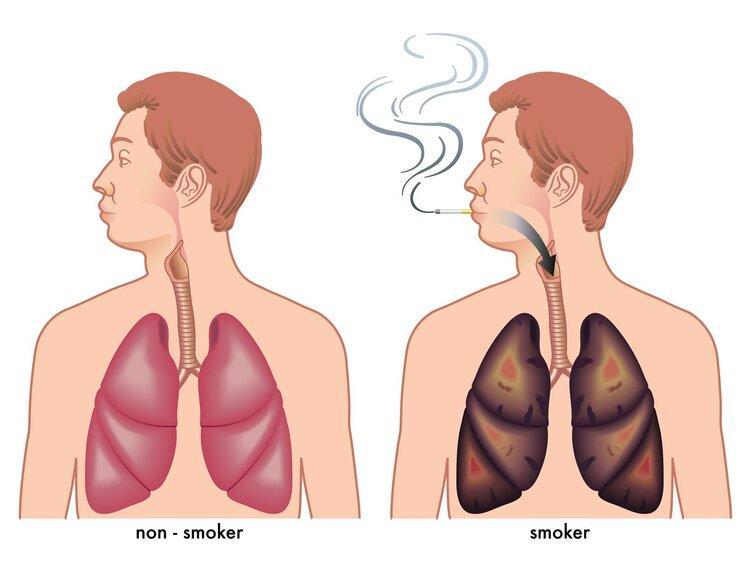 抽菸後,隨着時間的延長,吸菸量的增加,人體的肺部也會逐漸變黑。