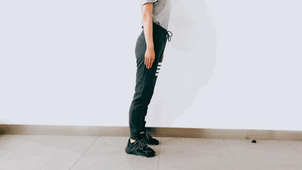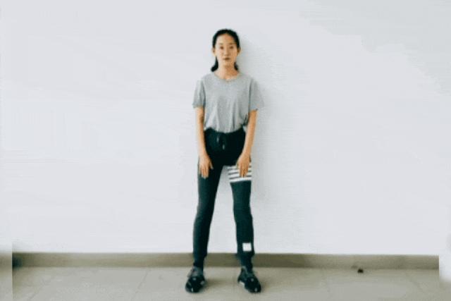 站姿提踵:雙手叉腰或手扶椅子、牆壁等作爲支撐,雙腳併攏,腳尖朝前,腳跟緩慢抬起至離地3~5釐米,維持10秒,然後放下腳跟,重複10~15次。