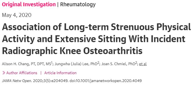 該研究發表在《美國醫學會雜誌》上,研究人員對1194名年齡45~79歲的中老年人進行了調查,受試者均爲膝關節炎高危人羣,並進行了10年的跟蹤隨訪。