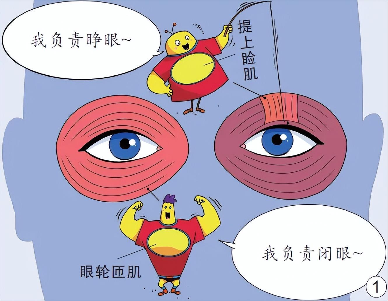 每個人的眼瞼都有兩種肌肉,一種叫“眼輪匝肌”,它像一個扁圓的車輪,當它收縮時,眼睛就會關閉;另一種叫“提上瞼肌”,位於眼球上方,當它收縮時,眼睛就可睜開。