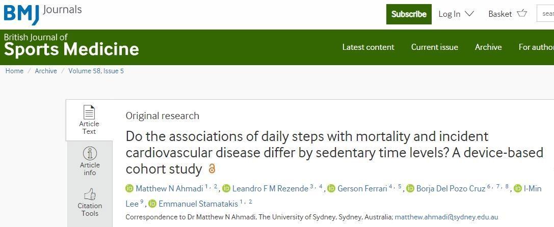 近日,悉尼大學醫學與健康學院的研究人員發表在《英國運動醫學雜誌》的一項研究指出,無論久坐多長時間,只要走路就可以幫助降低心血管疾病風險和全因死亡風險。