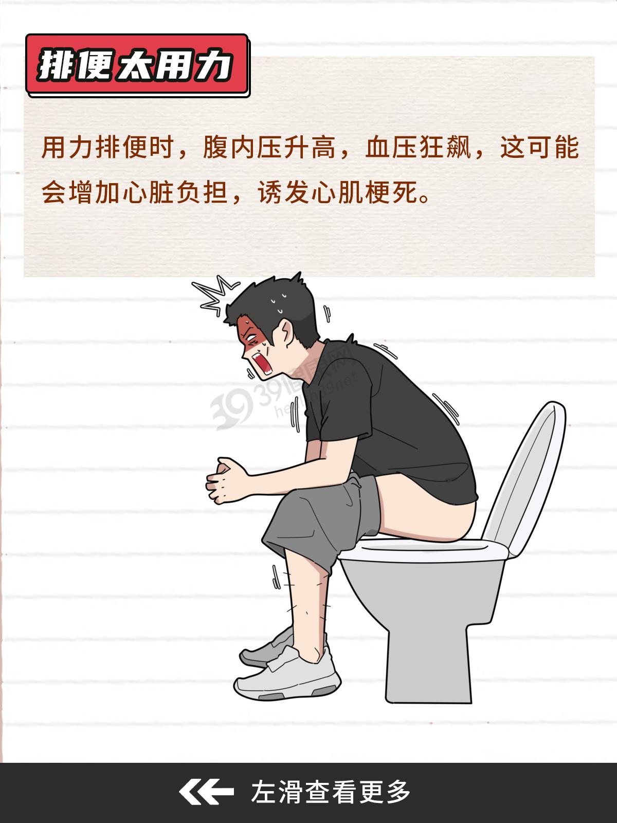 喫太撐;睡不好、睡不夠;久坐不動;突然劇烈運動;排便太用力。