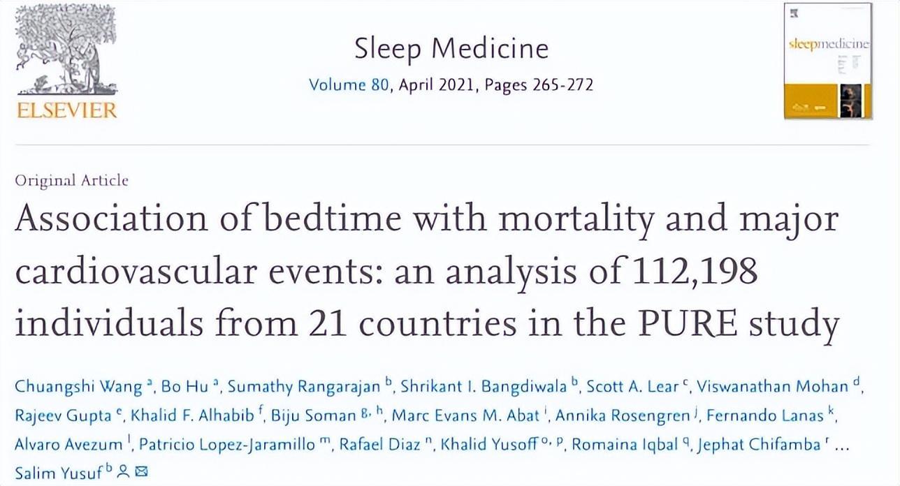 其實真的有這樣一項研究,加拿大麥克馬斯特大學人口健康研究所聯合中國醫學科學院阜外醫院在《Sleep Medicine》上刊登了一份涉及全球21個國家、112198名參與者的研究,該研究根據參與者作息時間的不同,將其分成早睡組(晚上6點-10點睡覺)、正常組(晚上10點-12點睡覺)、晚睡組(晚上12點以後睡覺)三組。