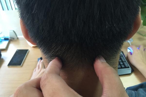 ①雙手拇指分別置於兩側風池穴,其餘四指抱頭,輕輕上下刮動或揉按,每次3-5分鐘。