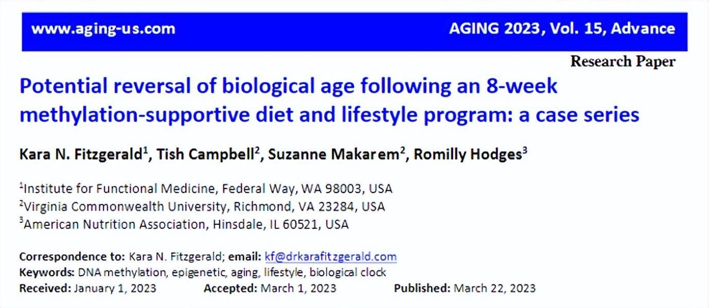美國學者曾在《衰老》雜誌上發表過一項研究,研究稱通過改變飲食、生活方式等可影響DNA甲基化,讓身體變得更加年輕。