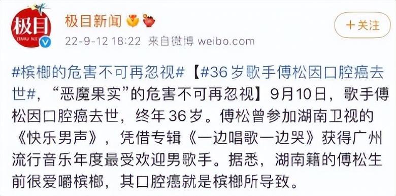 2021年,歌手傅松在社交媒體公佈了自己得口腔癌消息,引起了不少網友的關注。