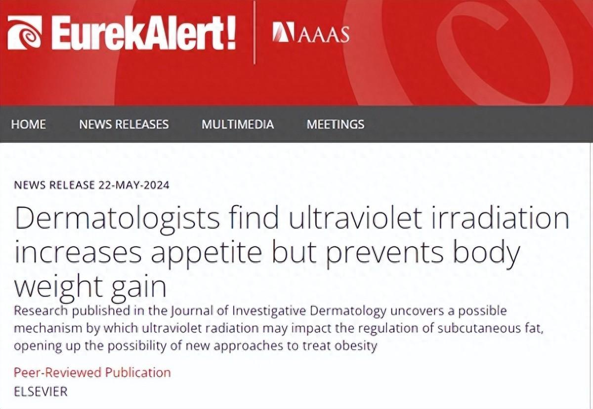 如今,肥胖已成爲日益重要的全球公共衛生問題。5月22日發表在《皮膚病學研究雜誌》的一項最新研究中,韓國首爾國立大學醫院皮膚科研究人員評估了紫外線暴露對食慾、體重調節的影響。