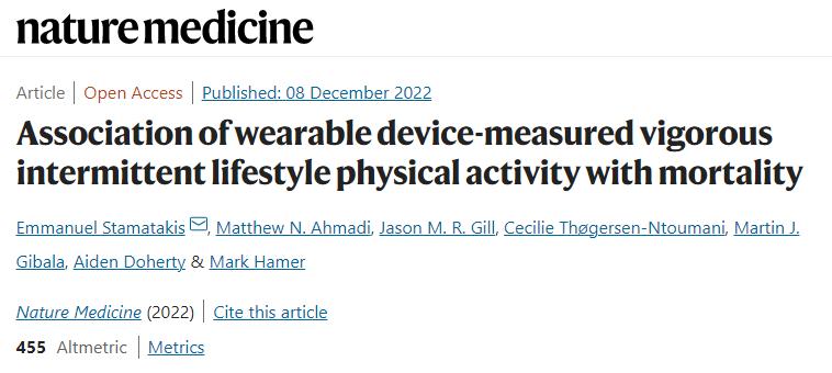 研究人員通過給受試者佩戴腕式追蹤器來測量受試者的運動情況,分析短暫劇烈間歇運動與全因、心血管疾病以及癌症死亡率之間的關係。