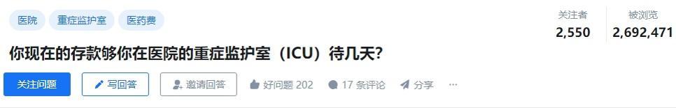 某乎上曾經出現過這樣一個熱門話題#你現在的存款夠你在ICU待幾天?#
