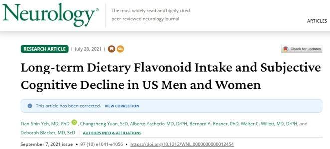 哈佛醫學院的研究人員在《神經病學》上發表過一項研究,通過問卷調查的形式評估受試者飲食中的類黃酮攝入以及認知功能。