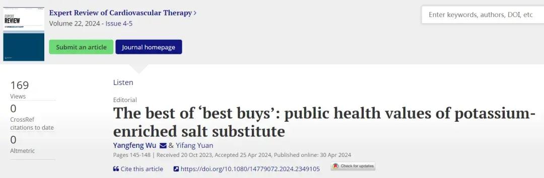 近日,北京大學臨牀醫學高等研究院副院長武陽豐發表研究述評,呼籲重視「代鹽」的公共衛生價值,在全民範圍推廣,以防控高血壓等心血管疾病。