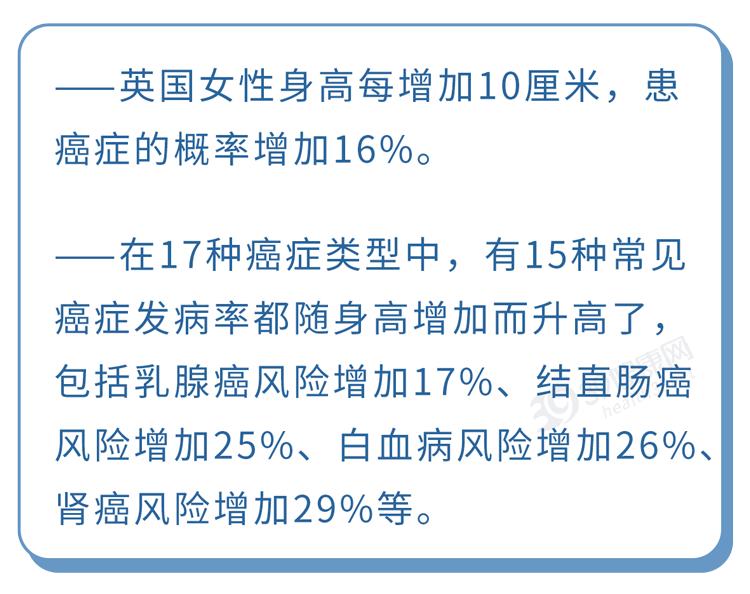 一些研究發現,相比矮個子,高個子的人患各種癌症風險更大。