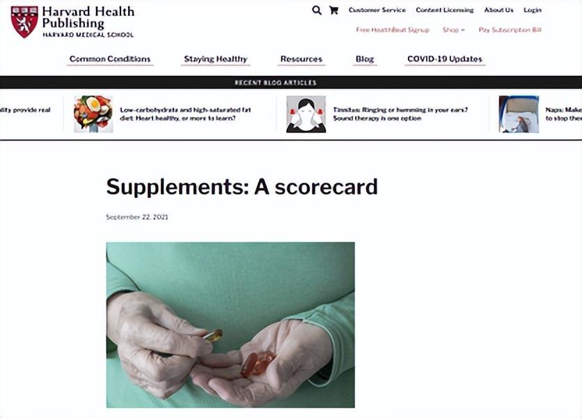 2021年9月,哈佛醫學院在《哈佛健康》上發文對廣大羣衆是否額外補充市面上的常見營養保健品進行了分析。