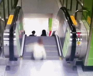 自動扶梯兩頭高度變化大,人不容易適應;且頭和腳部運動半徑不一樣,容易導致失穩跌倒。因此,自動扶梯上跑動會導致比較大的安全隱患,也可能傷害其他乘客。