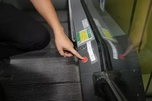 發生緊急情況,應立即呼叫人員幫忙按下位於出入口處的紅色緊急停止按鈕。如果周圍沒人,用雙手緊緊抓住扶手,把腳抬起來。