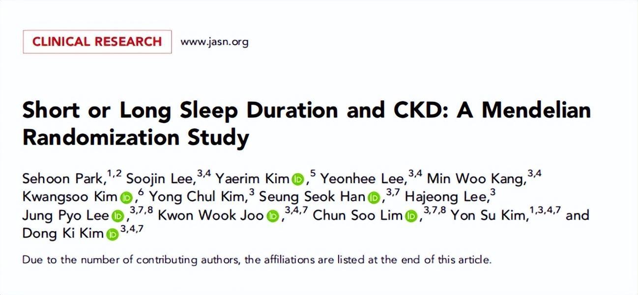 韓國首爾大學的研究人員在《美國腎臟學會雜誌》發表了一項孟德爾隨機化研究,探討短或長睡眠時間與慢性腎病的關聯。