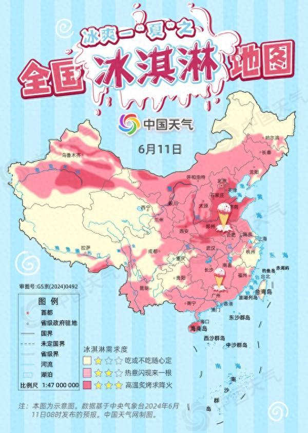6月8日起,華北、黃淮等地開始出現35℃以上高溫,高溫區域預計將在6月11~13日持續擴大,河北、河南、山東等地部分地區甚至經受着40℃的“炙烤”。“中國天氣網”根據各地“熱度”特別推出“全國冰淇淋地圖”,部分地區熱意閃現,可以喫上一根;熱到冒火的地區,一根或許還不夠。在熱浪翻滾的酷暑,喫冰淇淋防暑降溫可行嗎?“寒熱交加”對身體好不好?