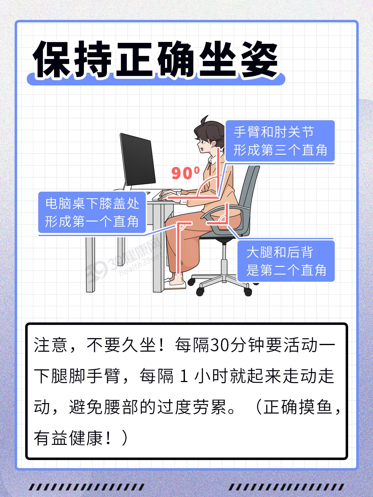 彎腰不彎腿、坐姿不正確、蹺二郎腿、單手提重物、久坐/久站2小時以上……