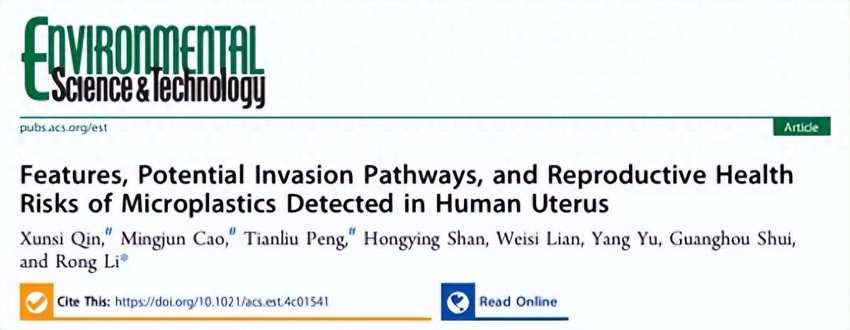 6月3日,北京大學第三醫院李蓉教授團隊在環境領域國際期刊《環境科學與技術》發表一項新研究,發現微塑料已悄悄侵入人類子宮,危害女性生殖健康。
