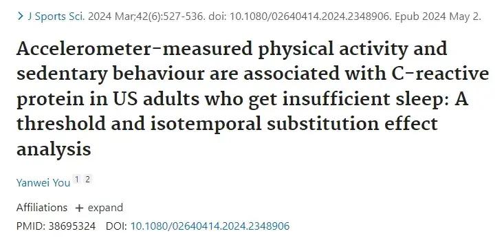 研究者通過美國國家健康與營養檢查調查(NHANES)的數據,重點關注了2113名自我報告睡眠不足的成年人,分析了其身體活動和久坐行爲與CRP水平之間的關係。