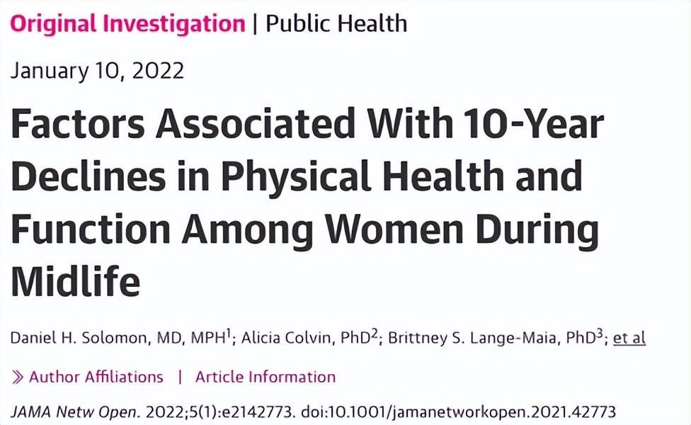 2022年1月,《美國醫學會雜誌》發佈了一項長達20年的研究,該研究追蹤了多個種族的中年婦女,結果顯示,大約20%的女性在55歲時經歷了健康水平的顯著臨牀下降。