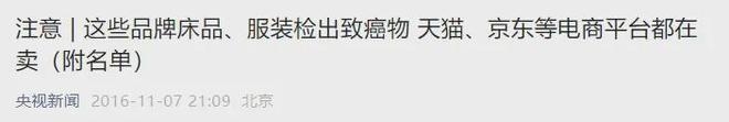 2016年11月,央視就曝光了一些被查出致癌物的牀品。
