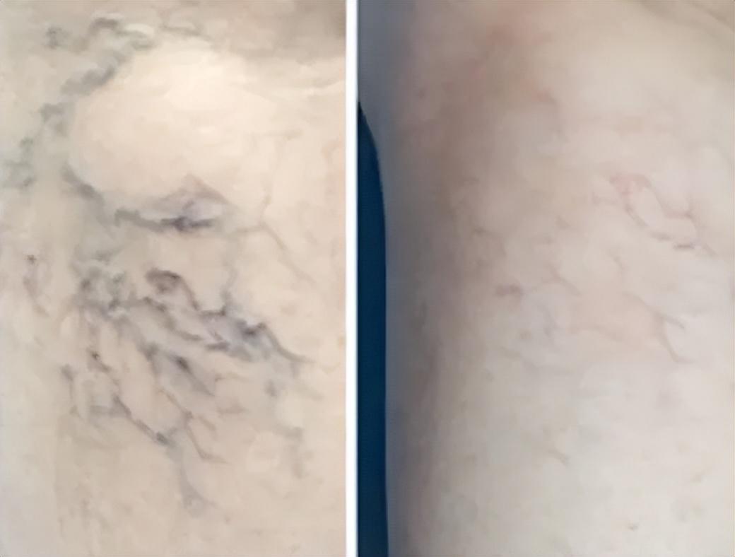 最開始,我們腿上的毛細血管擴張,可能出現像血絲一樣的改變,慢慢地血絲變成青紫色,這時一般沒什麼感覺,容易被忽視。