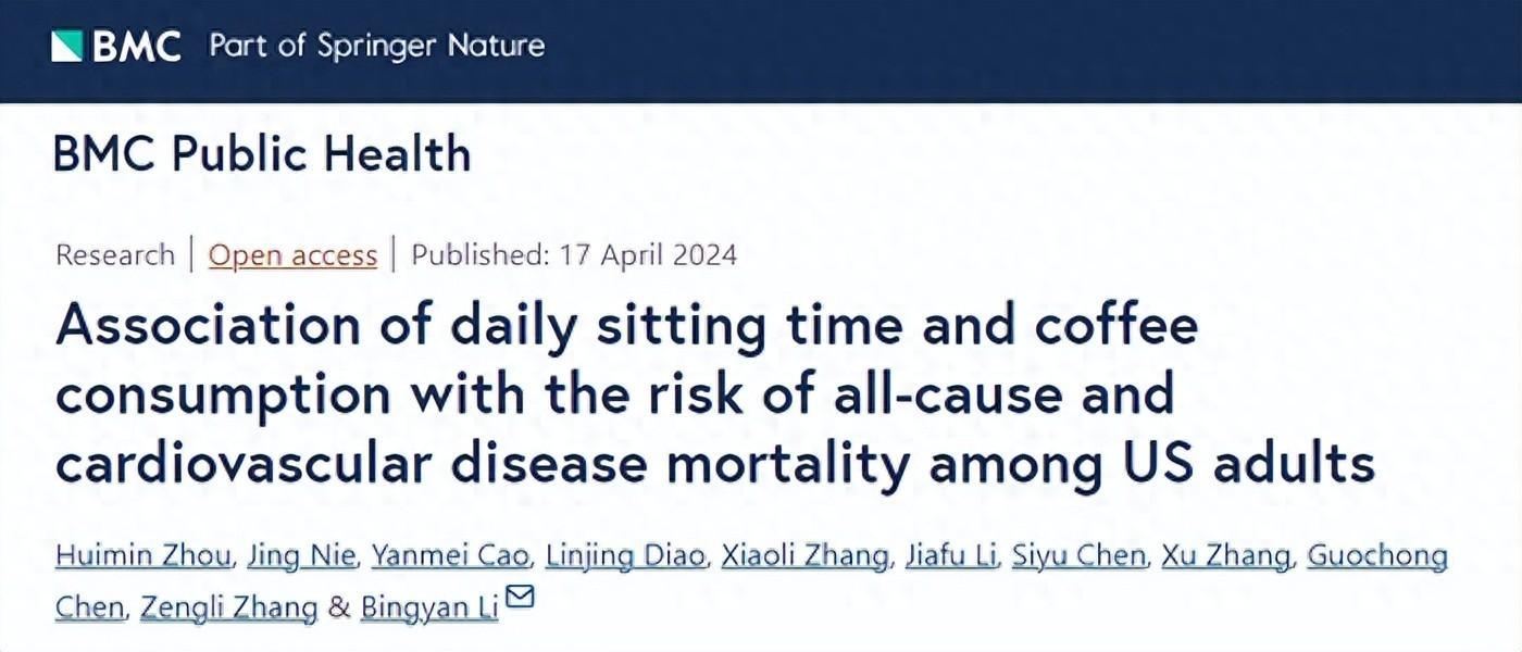 2024年4月17日,蘇州大學醫學院的科研團隊在《BMC Public Health》上發表了最新研究,結果顯示,每天喝咖啡,有助於降低久坐帶來的死亡風險。