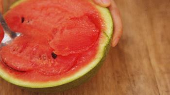 提醒:越靠近瓤瓜越甜,熱量也越高,倘若你還要再控制熱量,那切甜瓜時,連着瓜籽的瓤就多去些。