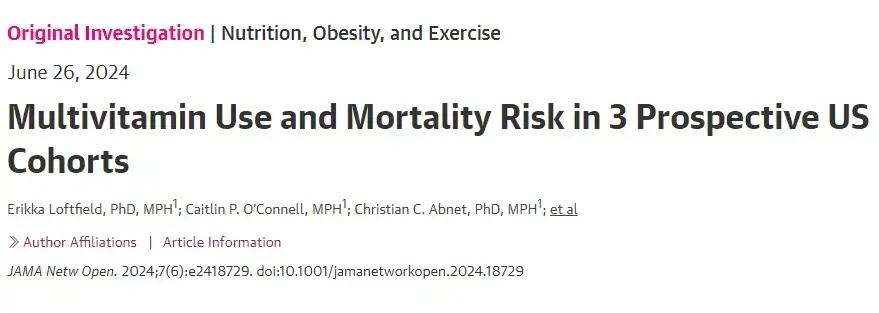 近日,美國國家癌症中心發表在《JAMA》子刊上一項研究(目前此領域規模最大、持續時間最長的研究),追蹤調查了390124名平均年齡爲61.5歲的健康成年人數據長達27年,分析每天喫複合維生素和死亡率之間的關係。