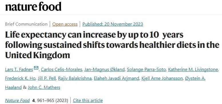 去年《自然》子刊上曾發表過一項研究通過不同飲食模式對人壽命的影響,結果發現,70歲時後改變不健康飲食模式,預期壽命都會有所增長,其中男性和女性將有機會分別增加5.4和5.0年。而在40歲時改變,男性和女性的預期壽命甚至分別能夠增加10.8和10.4年。