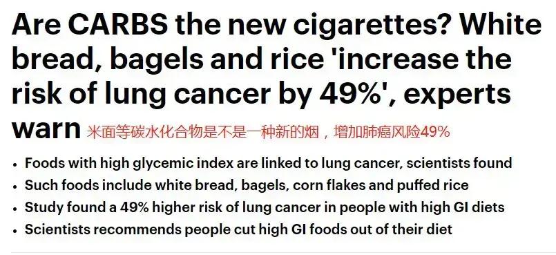 其實這個說法主要是來源於美國德州大學MD安德森癌症中心流行病學系主任、華人科學家吳息鳳的團隊發表在《Cancer Epidemiology Biomarkers & Prevention》上的一項研究,該研究指出喫太多高升糖指數的食物,會升高血糖,引起胰島素的抵抗,從而導致肺癌風險上升。