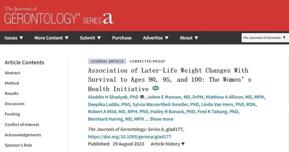 該研究共納入了5.4萬餘名年齡在 61-81歲的女性,根據體重的變化將所有受試者劃分爲體重減輕、體重增加和體重穩定3組(以5%之內的體重變化作爲基線),並記錄她們在短期(3年)和長期(10年)體重變化,最終有30647名受試者至少活到了90歲。