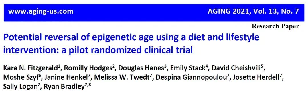 2021年11月,美國功能醫學研究院、加州大學洛杉磯分校等機構的研究人員發表在《衰老》雜誌雜誌上的一項突破性臨牀實驗研究指出,通過簡單地改變飲食習慣和生活方式,在8周之內就可以讓參與式年輕3歲,實現生物學上的年齡逆轉。