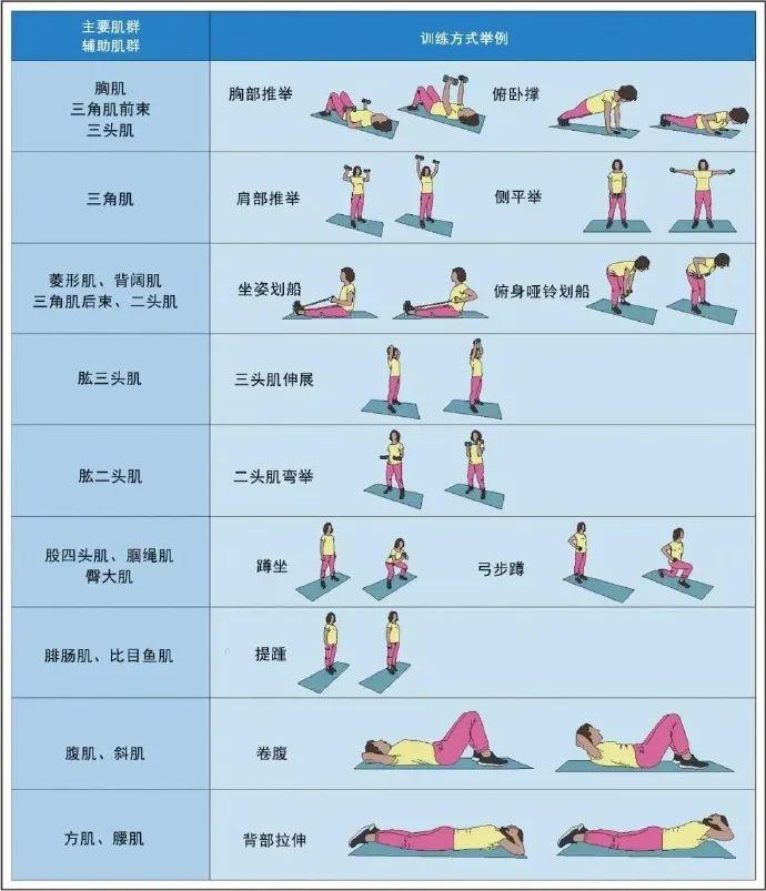 各肌羣訓練方法舉例↓