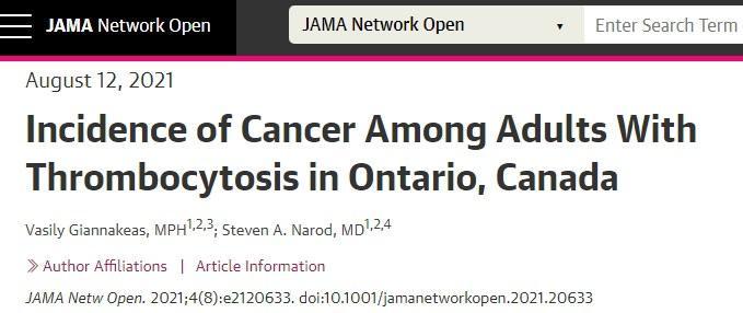 血小板是血液內負責凝血、止血的物質,《JAMA Netw Open》上的一項研究稱,血小板計數高的人,麗紅結腸癌、胃癌、食管癌、胃癌以及卵巢癌的風險會明顯增加,其中相關性最高的爲肺癌、結直腸癌。